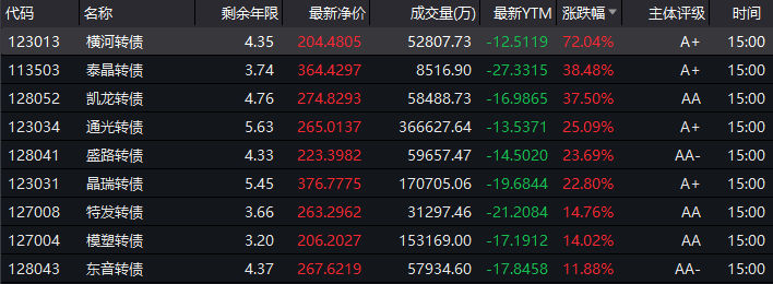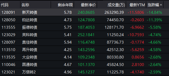 新天转债跌近15%
