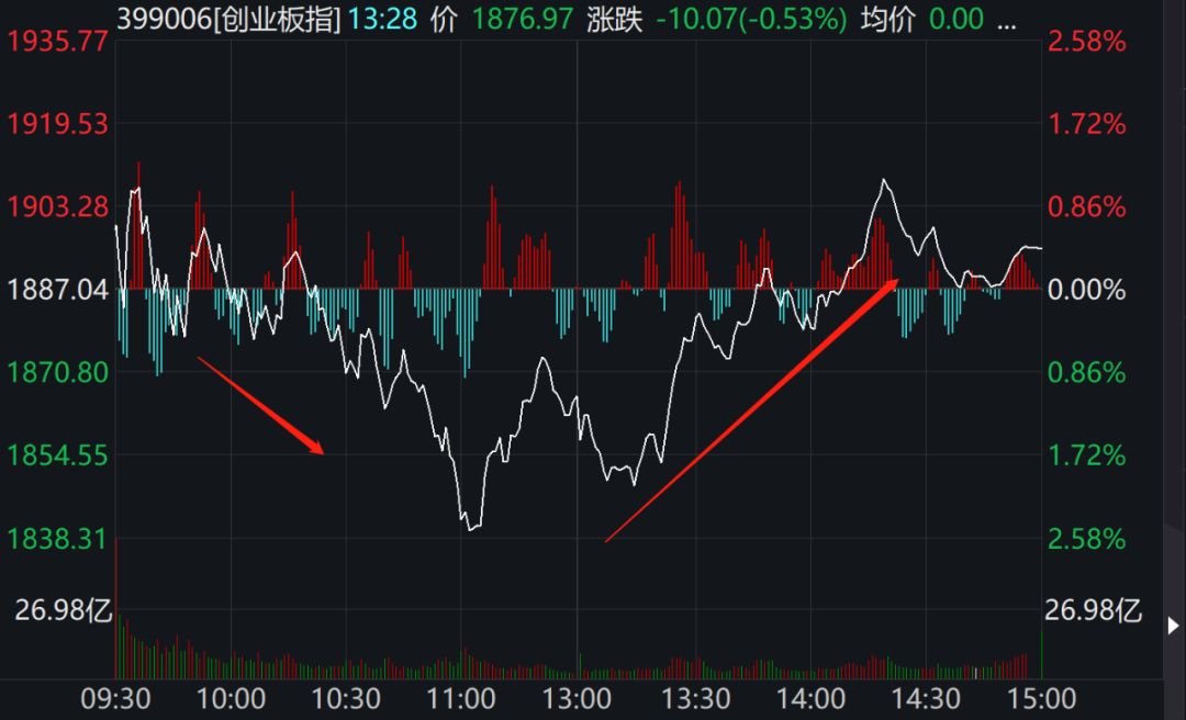 创业板指尾盘翻红
