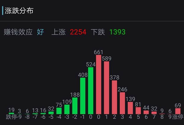 当天,上涨股超2254只,其中涨停股达69只。A股市场结构性行情特征明显。