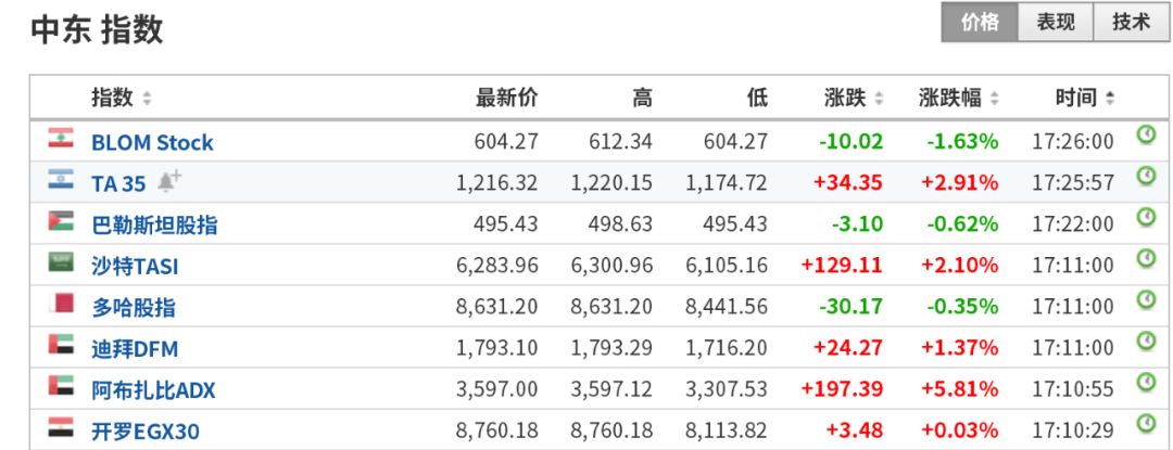 今日下午,中东各国股市先后开盘,涨跌不一。