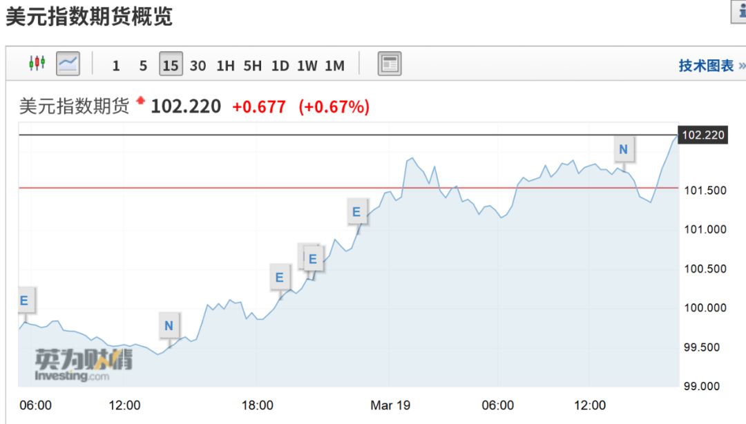 3月19日午后,美元指数仍在进一步上涨,站上102以上位置。而由于美元指数增强影响,澳洲、韩元、新西兰等汇率市场先后暴跌。
