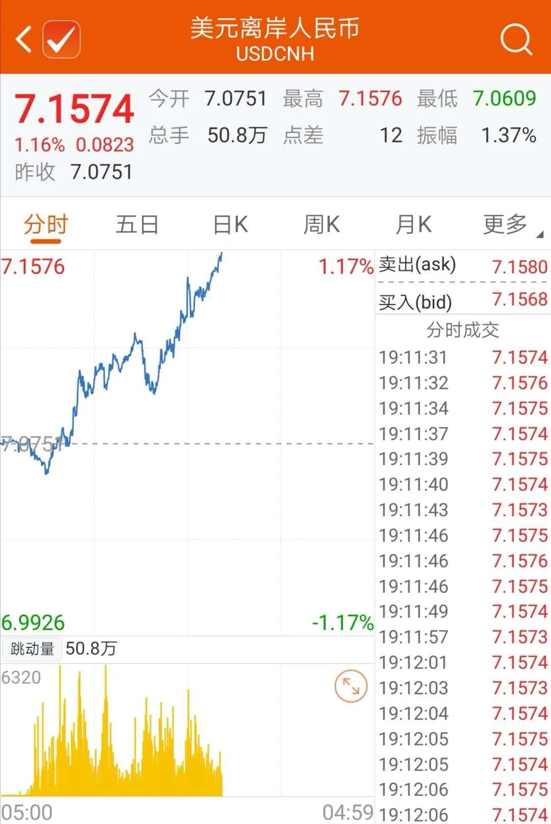 离岸人民币跌破7.15关口