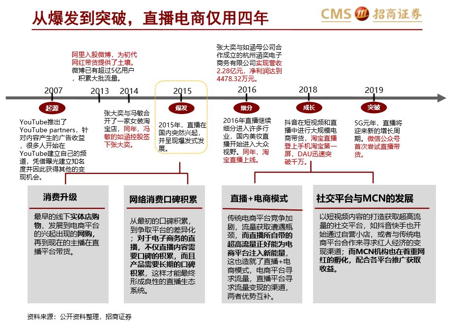 2019年作为电商直播的元年,招商证券指出直播与其他行业进行了恰到好处的结合,出现了“直播+”经济。