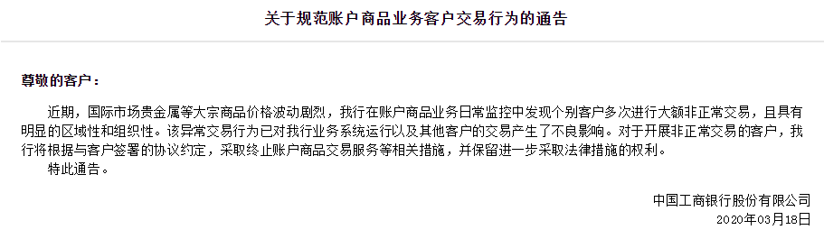 其一,是宣布将灵活调整账户商品的交易点差;其二,则指出个别客户存在具有明显的区域性和组织性的大额非正常交易,该行将予以限制。