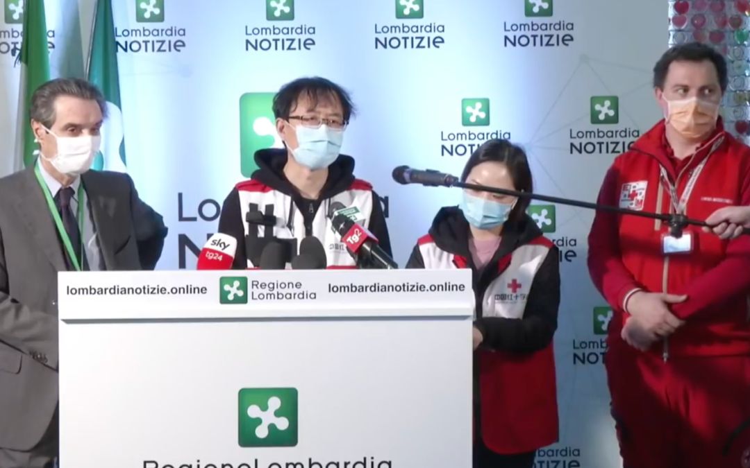 19日,中国医疗专家组抵达意大利伦巴第大区,了解该区防控情况,介绍中国抗疫做法。
