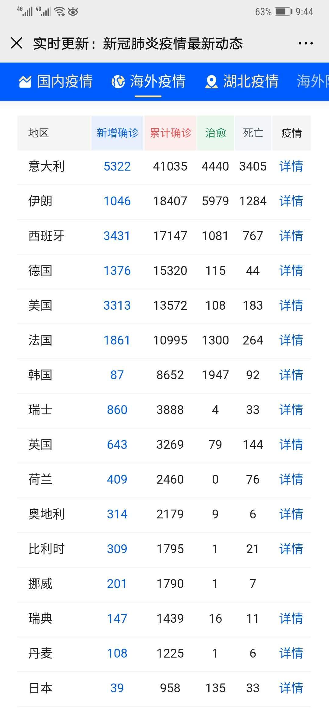 过去24小时,全球疫情形势急速发展。意大利单日新增确诊超过5000例,刷新单日新增确诊新高,累计确诊超过4万例;西班牙单日新增超过3000例;美国、法国累计确诊均超过1万例。