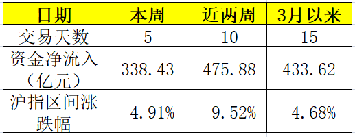 银河证券基金研究中心的股票ETF资金测算模型计算,截至3月20日收盘,近一周沪指跌幅4.91%,接近340亿元资金借道股票ETF进入市场;近两周10个交易日中,沪指跌幅接近10%,净流入资金更是多达475亿元。