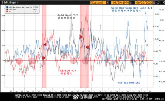 洪灏:这种说法有一定道理。但由于纯商品基金应该没有股票仓位。这个理论有些过于迂回。造成黄金暴跌最直接的解释应该是市场积压了太多的黄金非商业净头寸。黄金非商业净头寸在暴跌之前处于有史以来最高的位置。