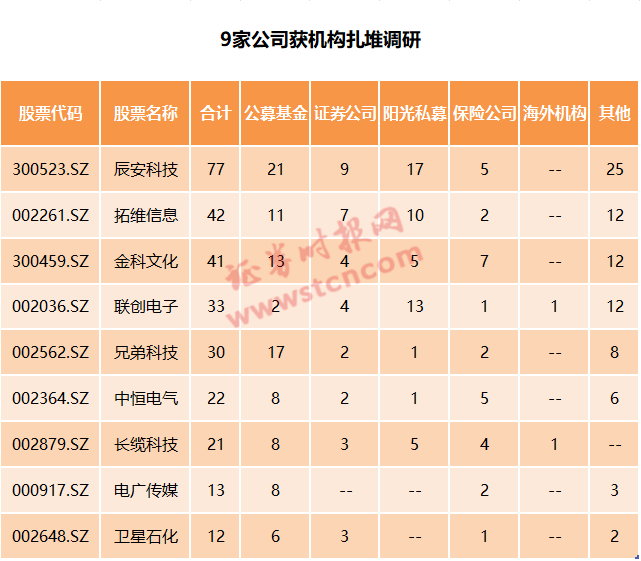 从具体调研机构来看,私募淡水泉调研了联创电子,星石投资调研了辰安科技、金科文化。