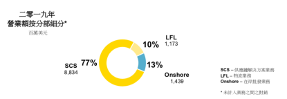 公告显示,目前利丰拥有供应链解决方案业务、物流业务及在岸批发业务三大分部,分别占集团营业额的77%、10%和13%。其中,供应链解决方案业务的营业额下跌11.1%,由于客户持续去库存、破产及店铺倒闭,以及客户更替及非策略性客户的退出;位于美洲、欧洲及亚洲的在岸批发业务营业额下跌13.6%;物流业务营业额受境内物流强劲需求的带动上升3.5%,主要归功于占营业额58%的中国市场、电子物流增长、对核心客户的服务的扩展,以及开拓新市场,环球货运代理则由于中美贸易摩擦以至环球贸易放缓以及航运费用受压拖累。