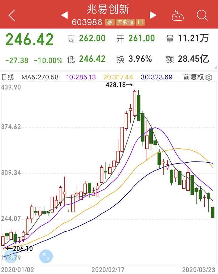公募基金重仓的兆易创新、立讯精密、长电科技、歌尔股份、蓝思科技、鹏鼎控股出现批量跌停。尤其是被基金经理视为超级大牛股的兆易创新,3月23日开盘就直接以暴跌4%低开,最终封死跌停板。