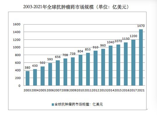 据前瞻产业研究院发布的数据显示,我国抗肿瘤药物的销售规模近年来保持了较高的平均增速,预计未来抗肿瘤药市场增速将维持在15%-17%之间,到2020年市场规模或达2200亿元。