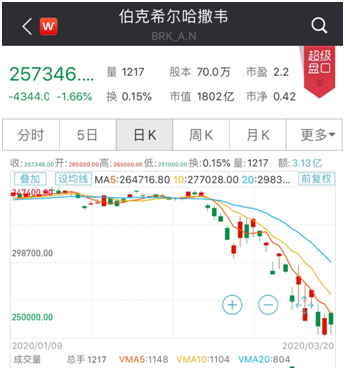 在大跌之下,甚至股神巴菲特的公司也被做空。S3 Partners此前的数据显示,在2月24日至3月3日期间,伯克希尔·哈撒韦名列美股市场上卖空量最大的股票名单中。自从2月9日高点到上周5低点,伯克希尔·哈撒韦股价跌去了27%。
