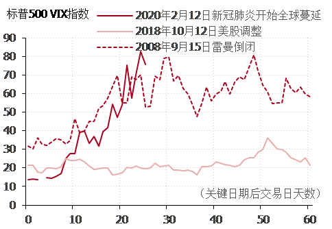 而表征市场恐慌情绪的股市波动率指数(VIX指数)则已经超过了雷曼倒闭之后的高点。可以说,美国股票市场的恐慌情绪更甚于次贷危机时期。