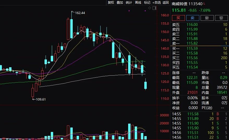 同样的,南威转债昨日收盘价为115.81元,强赎的价格为100.347元/张,同样今天不卖出不转股的话,将亏13.35%。