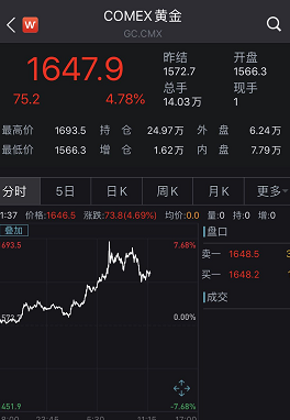 热门中概股中,瑞幸咖啡涨超13%,欢聚时代涨超10%,哔哩哔哩涨超8%,百度、京东、网易、蔚来汽车涨超6%,阿里巴巴、微博、腾讯ADR、拼多多涨超3%。而金价则较早前有所回落。
