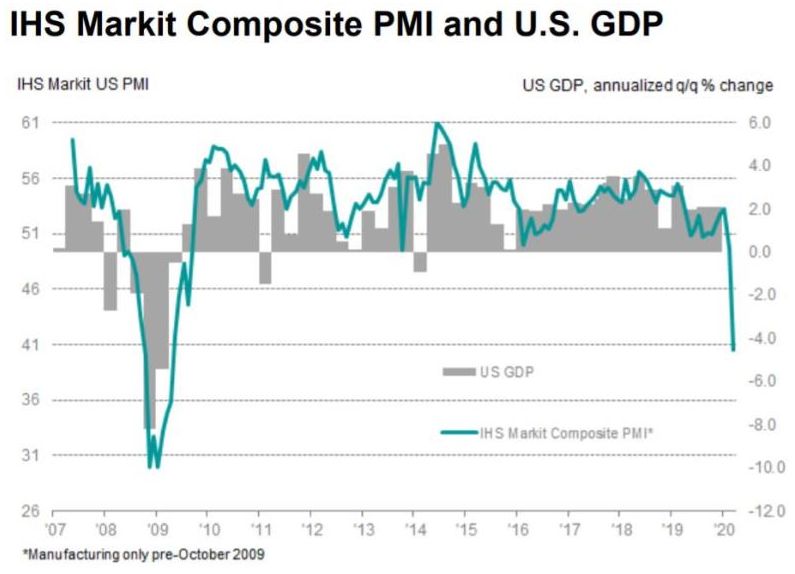 另外,3月24日,美国公布数据显示,3月Markit制造业PMI初值49.2,跌入萎缩区间,为2019年7月以来首次,并创下2009年以来新低,好于预期的42.8,低于前值50.7。3月Markit服务业PMI初值为39.1,创历史新低,预期为42,前值为49.4。