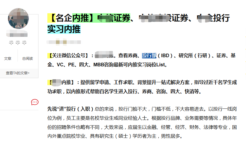此外,中介机构通过金融行业远程实习(PTA)收取费用的情况时有发生。对此,有大型券商投行人士向记者介绍,PTA是不通过HR系统的,也很难拿到实习证明,基本无法通过背调,“国内的券商很少玩这一套,推销的人都是别有用心”。