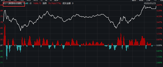韩国股市也表现强劲,韩国综合指数涨5.89%,收复1700点大关,报1704.76点,收复3月18日以来全部失地。