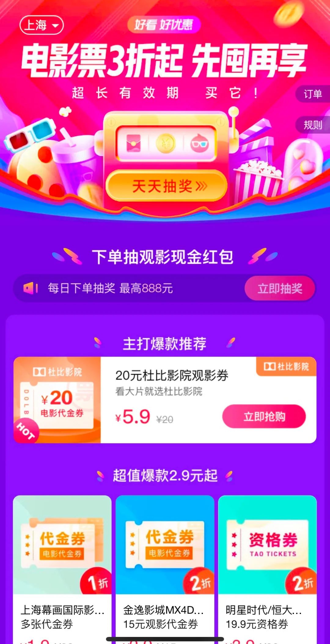 记者通过活动页面看到,目前预售以电影通票为主,优惠低至3折,此外,不同影院还有折扣券、促销消费卡等不同优惠形式。不过,需要注意的是,目前上海地区推出优惠礼包的影院多集中于青浦、宝山等相对偏远的地区,消费者在选购时需要注意适用问题。