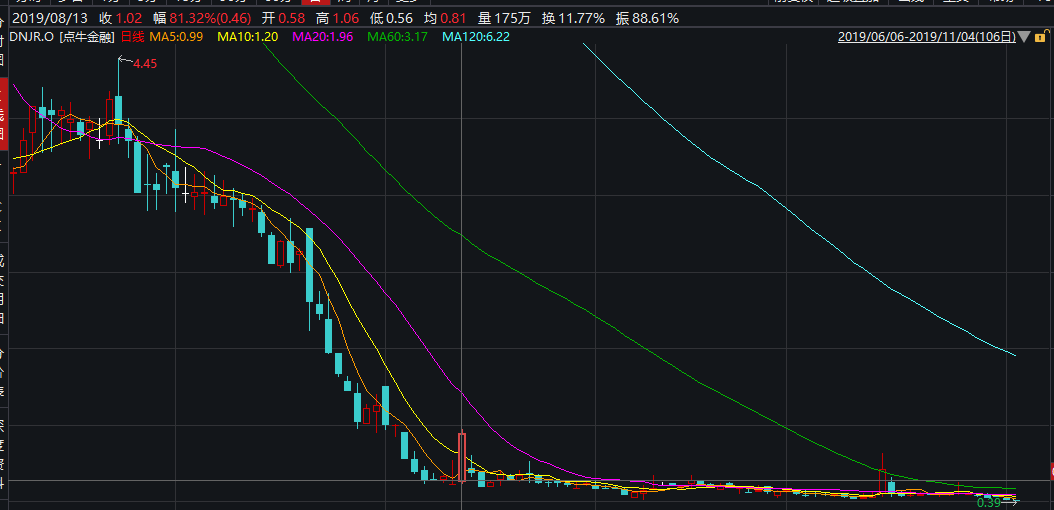 点牛金融首日开盘价5.2美元,最高价曾达到13.55美元/股,市值一度超2亿美元。然而,2019年以来,点牛金融的股价一路下跌。2019年9月,美国纳斯达克股票交易所向点牛金融发出股价下跌警示。据纳斯达克通知书,点牛金融的股价已连续30个工作日低于1美元,公司不再符合纳斯达克上市规则的最低出价要求。