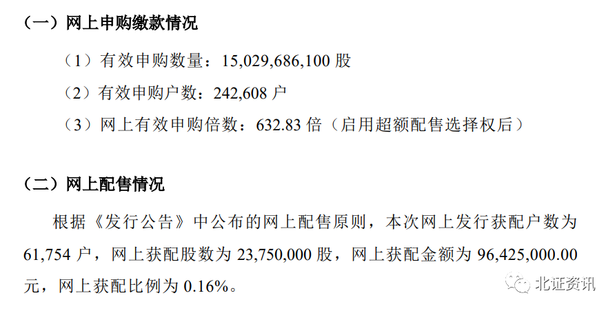 就在荣亿精密上市首日呈现赚钱效应的同时,其他北交所新股的发行也在有条不紊地推进。泰德股份今天公布北交所发行结果:有效申购户数为24.26万户,有效申购数量为150亿股,对应冻结资金约为610.21亿元,网上有效申购倍数为632.83倍(启用超额配售选择权后)。最终网上发行获配户数为6.18万户,获配比例为0.16%。