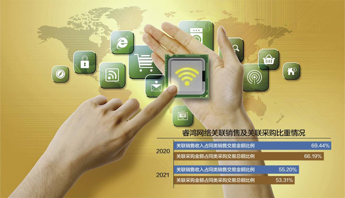 除了同业竞争关系外,睿鸿网络还与多家关联方存在交易关系,且关联交易占比较高。报告期内,睿鸿网络向关联方销售金额分别为3693.02万元、6252.95万元、225.28万元,占同类销售的比例分别为69.44%、55.20%、13.15%;向关联方采购金额分别为2613.97万元、4902.83万元、744.79万元,占同类采购的比例分别为66.19%、53.31%、68.82%。