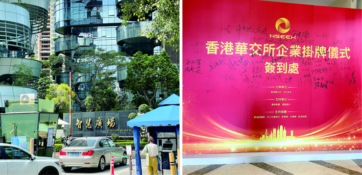 上半年,记者来到智慧广场。一出电梯,就能看到一块红色的“香港华交所企业挂牌仪式签到处”背景板,而这家公司的办公区,占据了该写字楼一整层。
